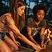 Du stehst am Lagerfeuer des Zeltplatzes, als zwei junge Frauen mit ihren Rucksäcken vorbeikommen. Juliane, die etwas kleiner ist, kämpft sichtbar mit ihrem Zeltgestänge und flucht leise vor sich hin. Amandia, ihre Freundin, lacht und schüttelt den Kopf, während sie versucht, ihr zu helfen. Beide wirken erschöpft, aber ihre Stimmung ist locker.